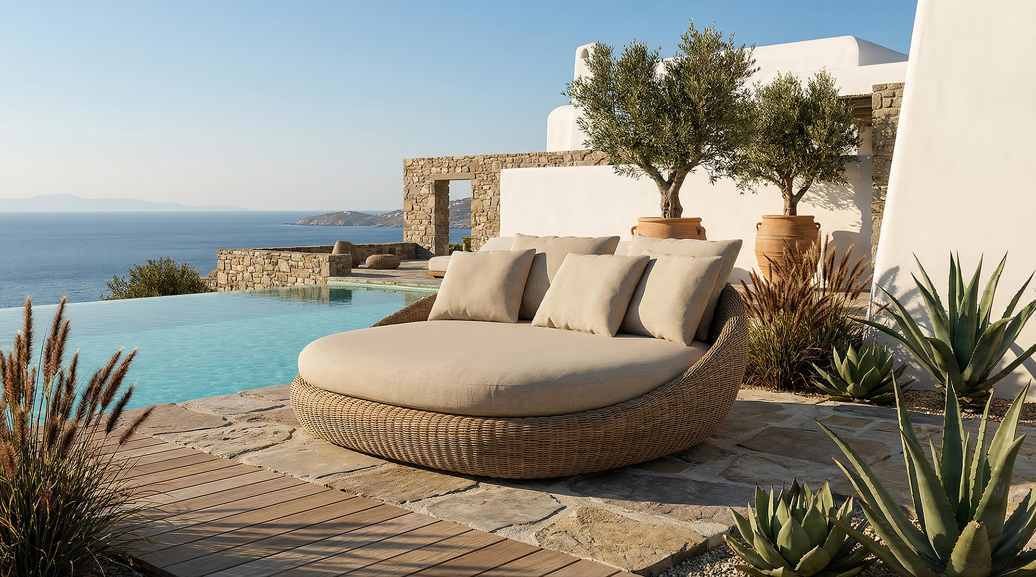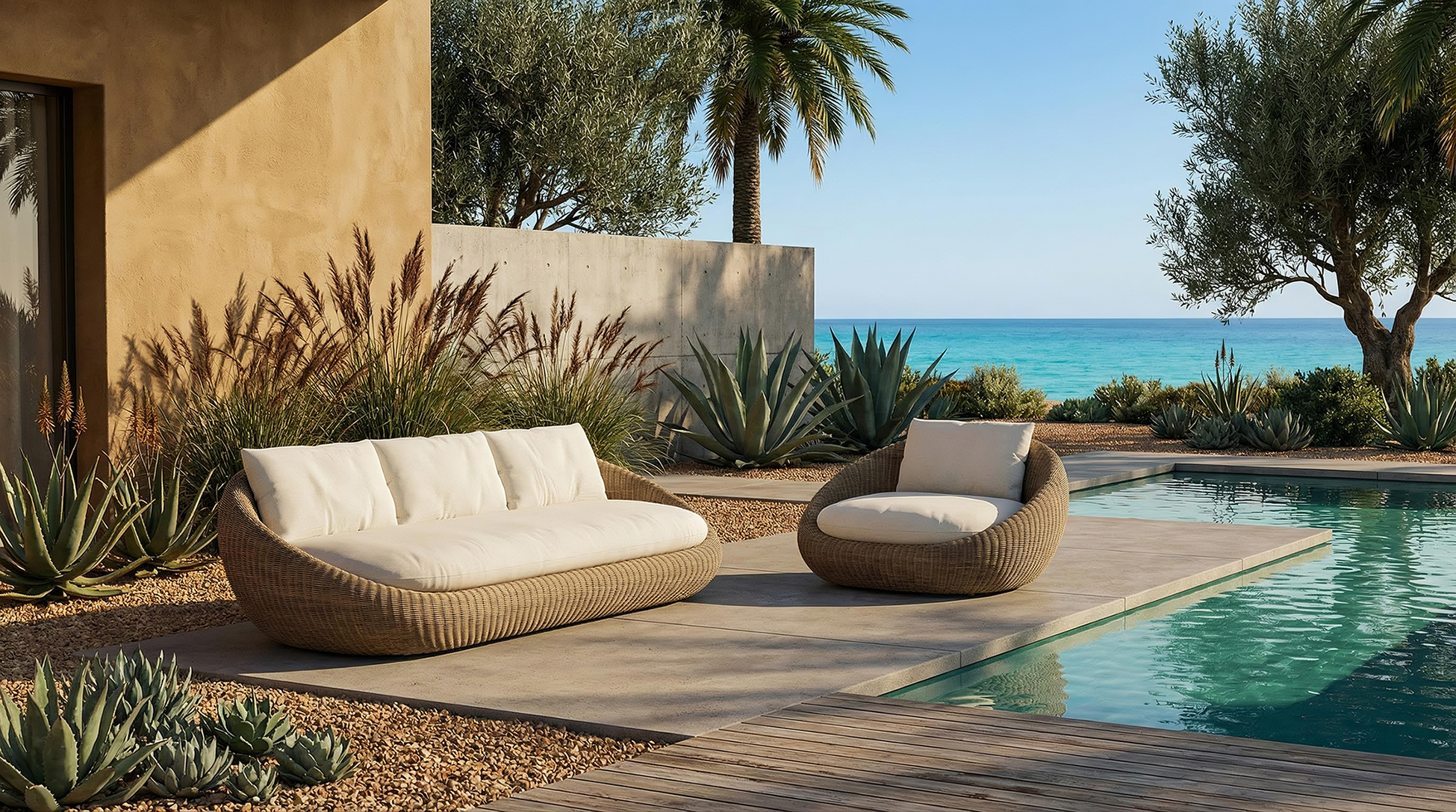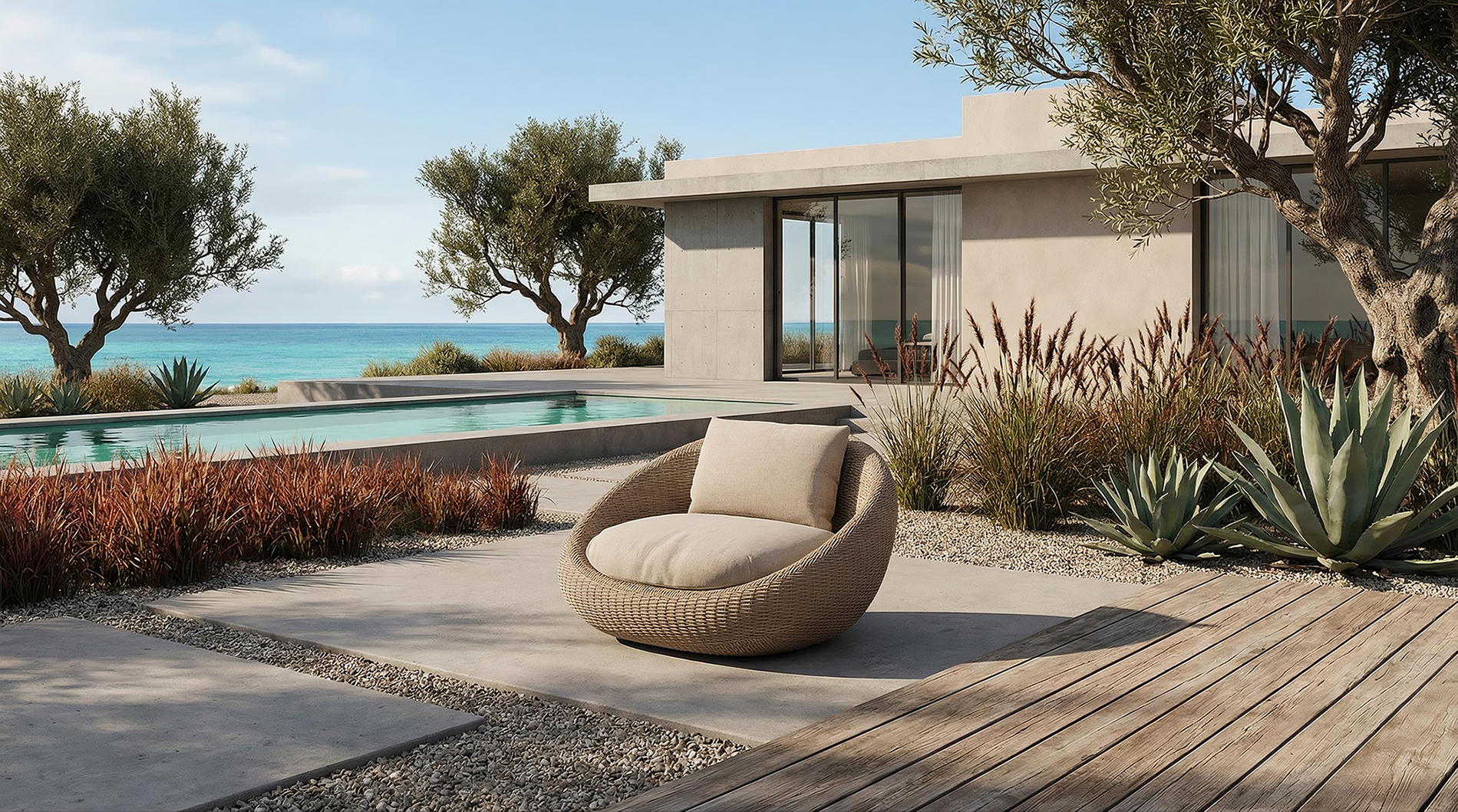 Aslı Erkun MARI is an outdoor collection designed by CLAUDIO BELLINI Studio for DANAO LIVING, developed as a family of seating elements united by a consistent formal language based on soft, continuous volumes and generous proportions.