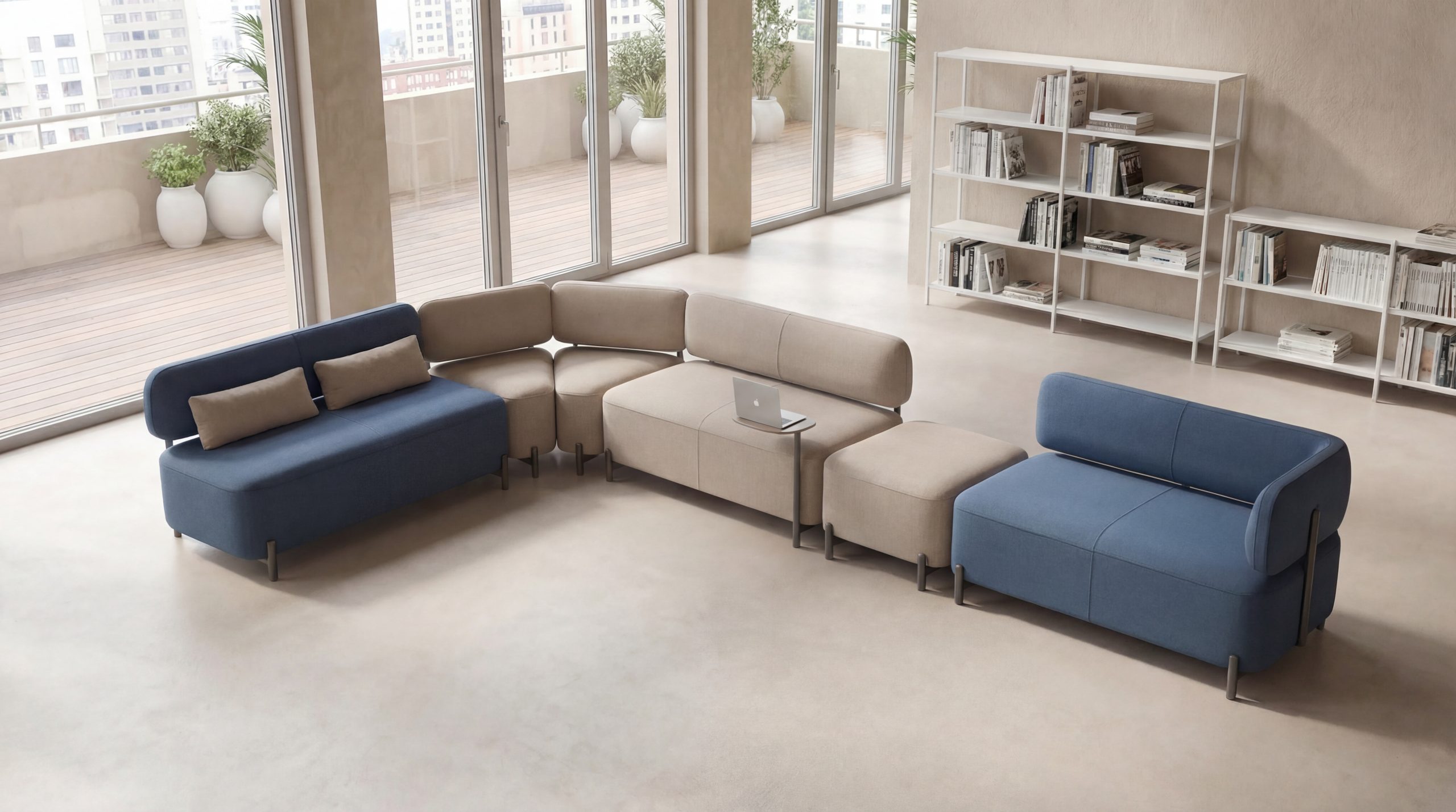 POP is a modular seating system designed by CLAUDIO BELLINI Studio for UE. Geometric modules combine to create linear, corner, or more articulated layouts, adapting to a variety of spatial needs. A continuous design language ensures visual coherence across every configuration.