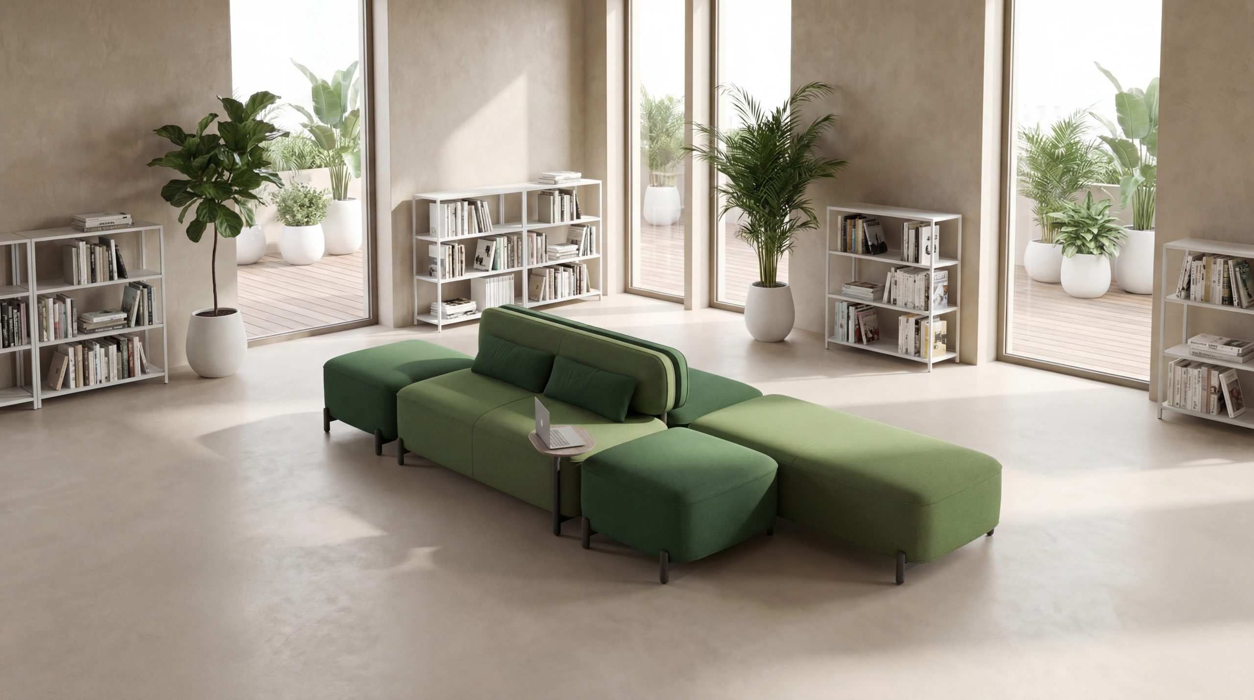 YUYI is a modular lounge system designed by CLAUDIO BELLINI Studio for KANO. Soft, generous volumes and a low profile express comfort through balanced proportions and fluid, rounded forms.Each element is a compact upholstered volume paired with a backrest supported by a slim metal frame, creating a subtle contrast between softness and structure. Loose cushions enhance comfort while allowing a natural interplay of tones and textures.The system includes linear and corner modules, lounge chairs, and ottomans, enabling configurations from more intimate settings to open, shared spaces. Occasional tables integrate seamlessly, reinforcing a coherent and understated language.YUYI balances softness and structure, offering a flexible solution for evolving work and public environments.
