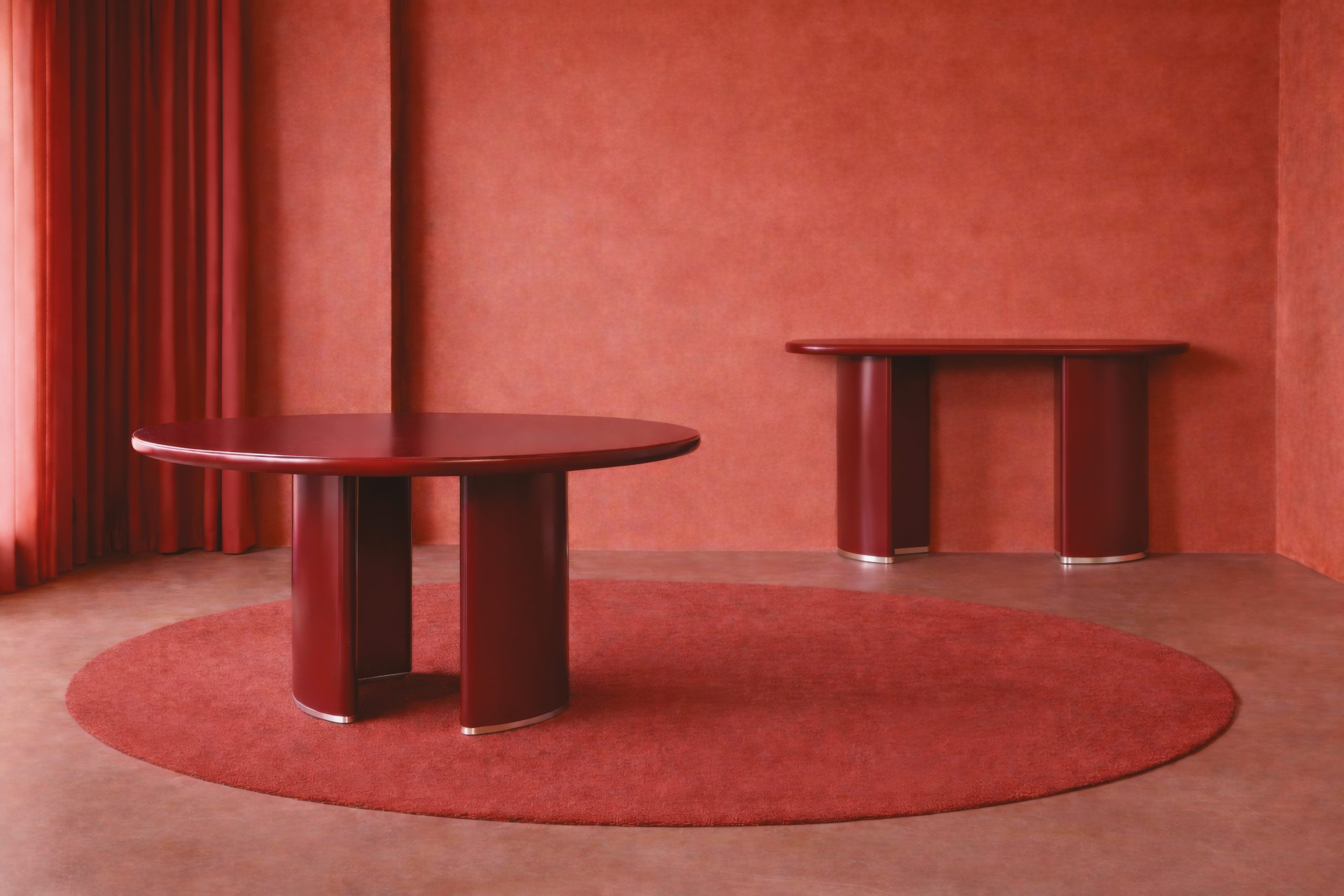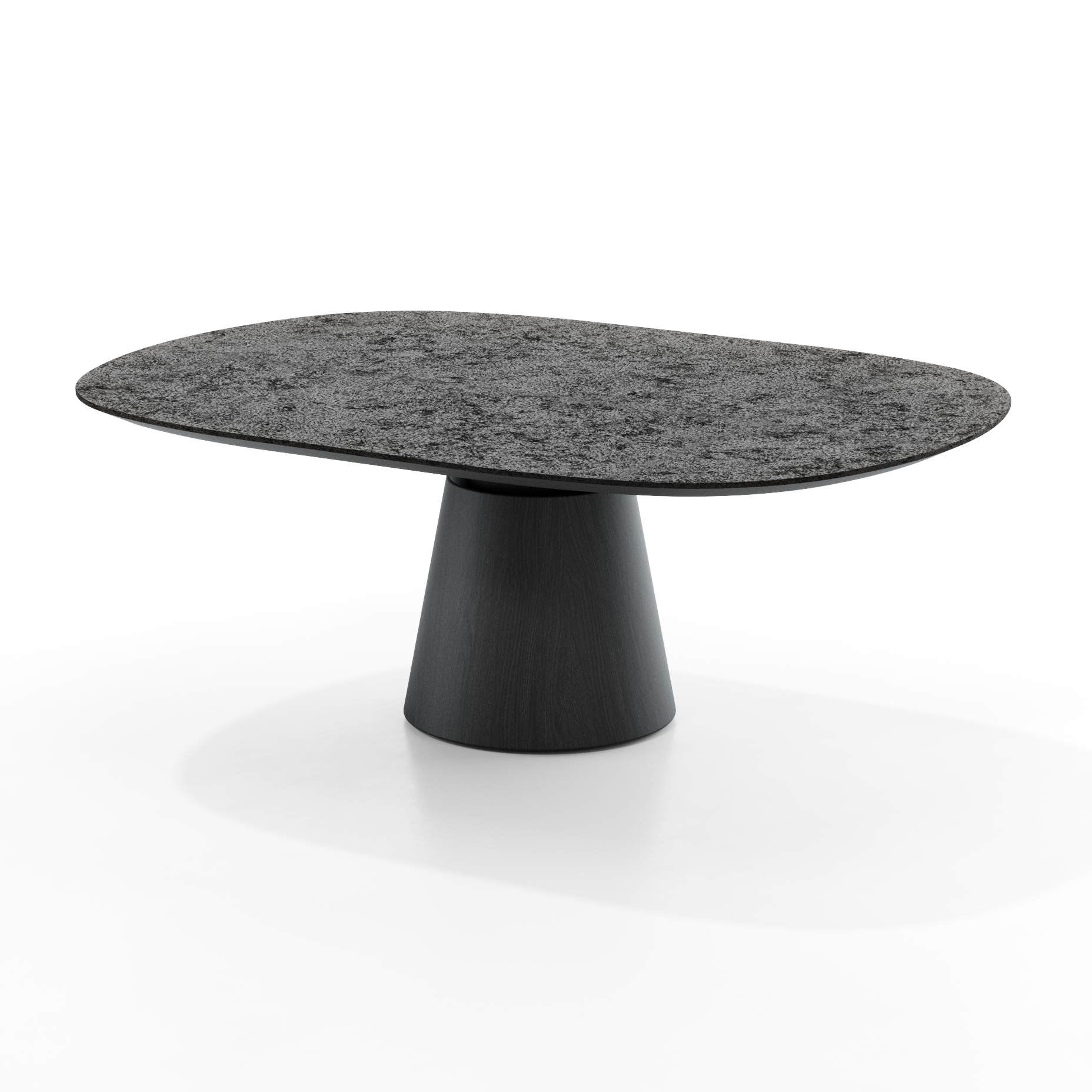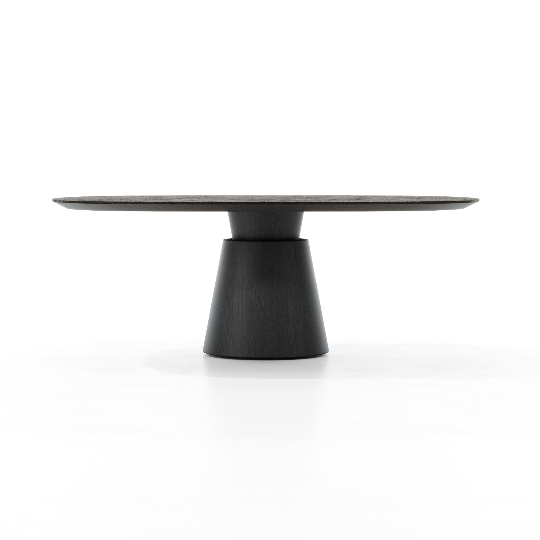The table is characterized by a compact, architectural truncated cone-shaped central base, which serves as the visual focal point of the piece. This is contrasted by a top with clean, continuous lines, designed to lighten the composition. The connection between the base and the top is designed to minimize visual impact, accentuating the sensation of lightness and making the top appear almost suspended. PAN defines itself as a sculptural yet balanced element, capable of giving identity to a space through a calibrated dialogue between volumes, proportions, and materials.