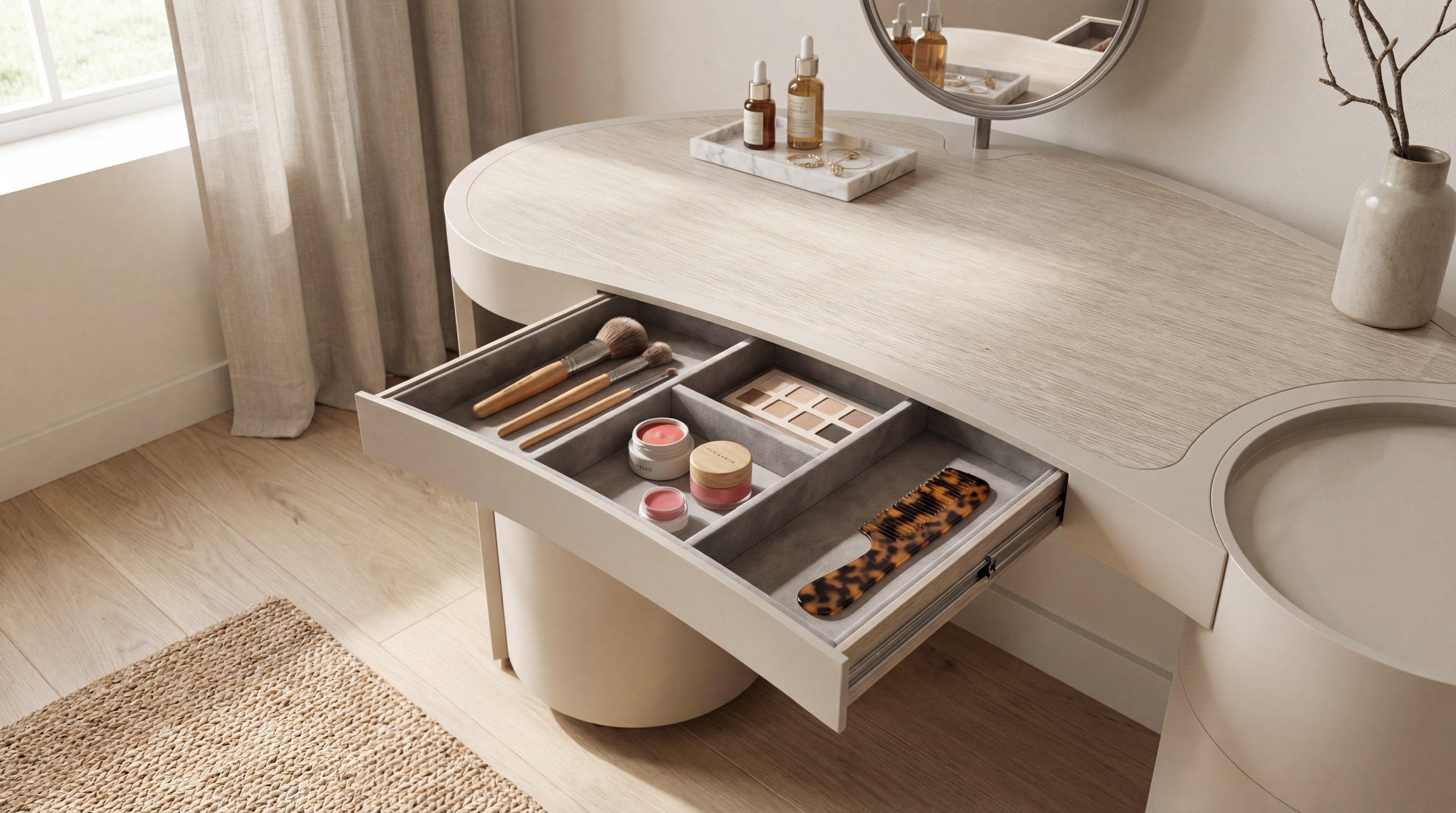 Light is a fundamental element of harmony. LUMA, from “lumen,” shapes a personal sanctuary where reflection—both literal and introspective—meets beauty rituals. Its luminous presence brings clarity, softness, and balance to intimate daily moments.