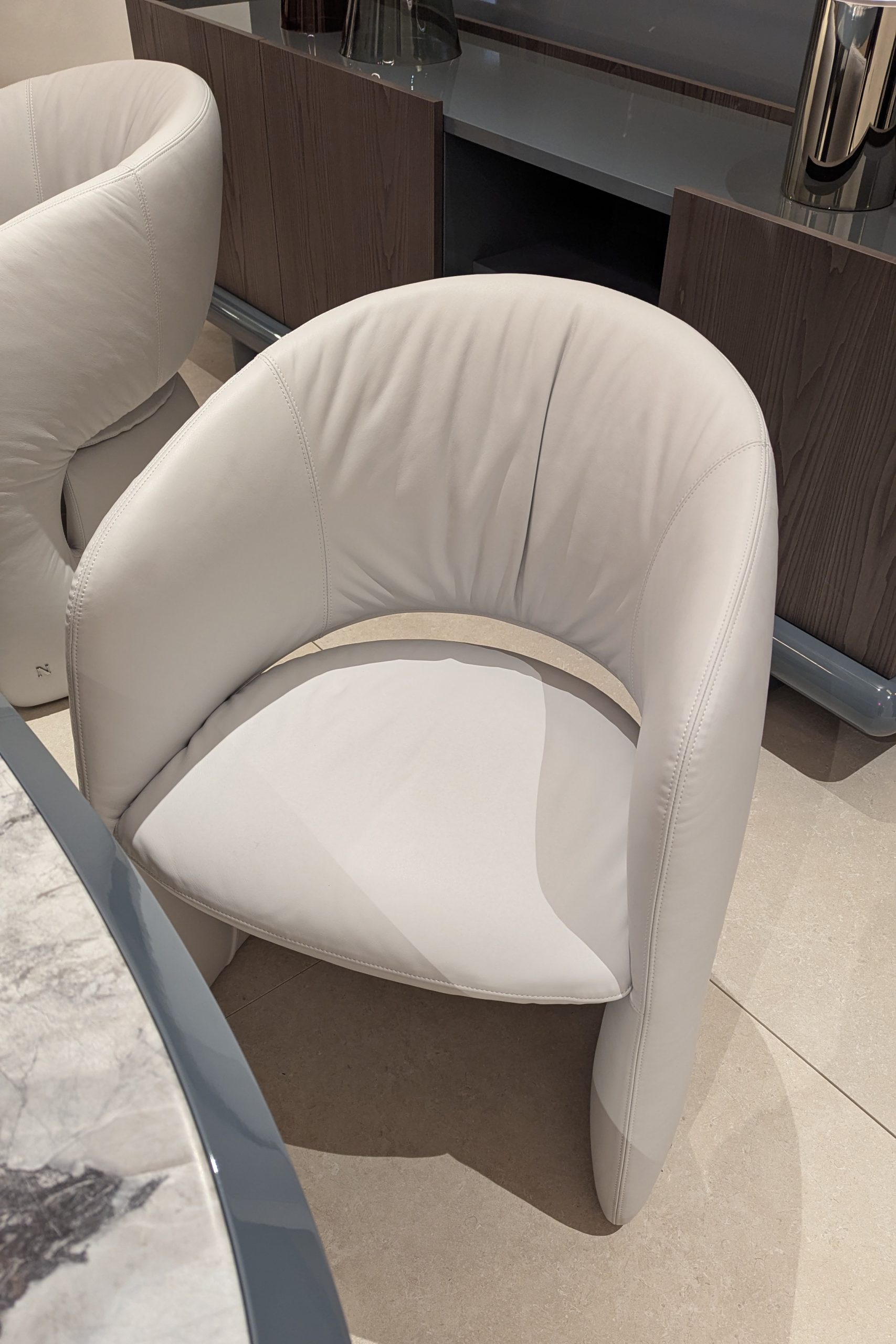 RIVA chair captures the gentle rhythm of coastal landscapes, where curves meet elegance. Its slender, sculptural form embraces the body with quiet sophistication, offering a light welcoming presence in any space.
